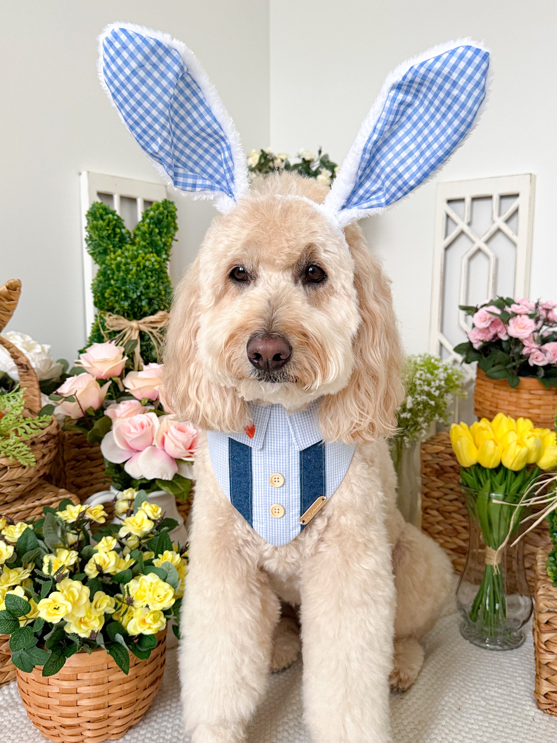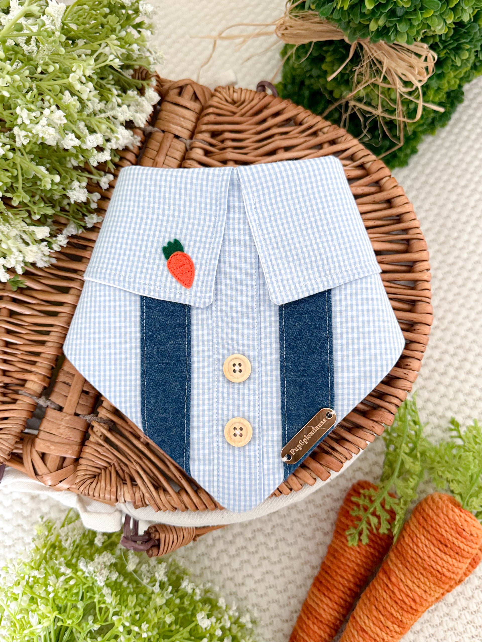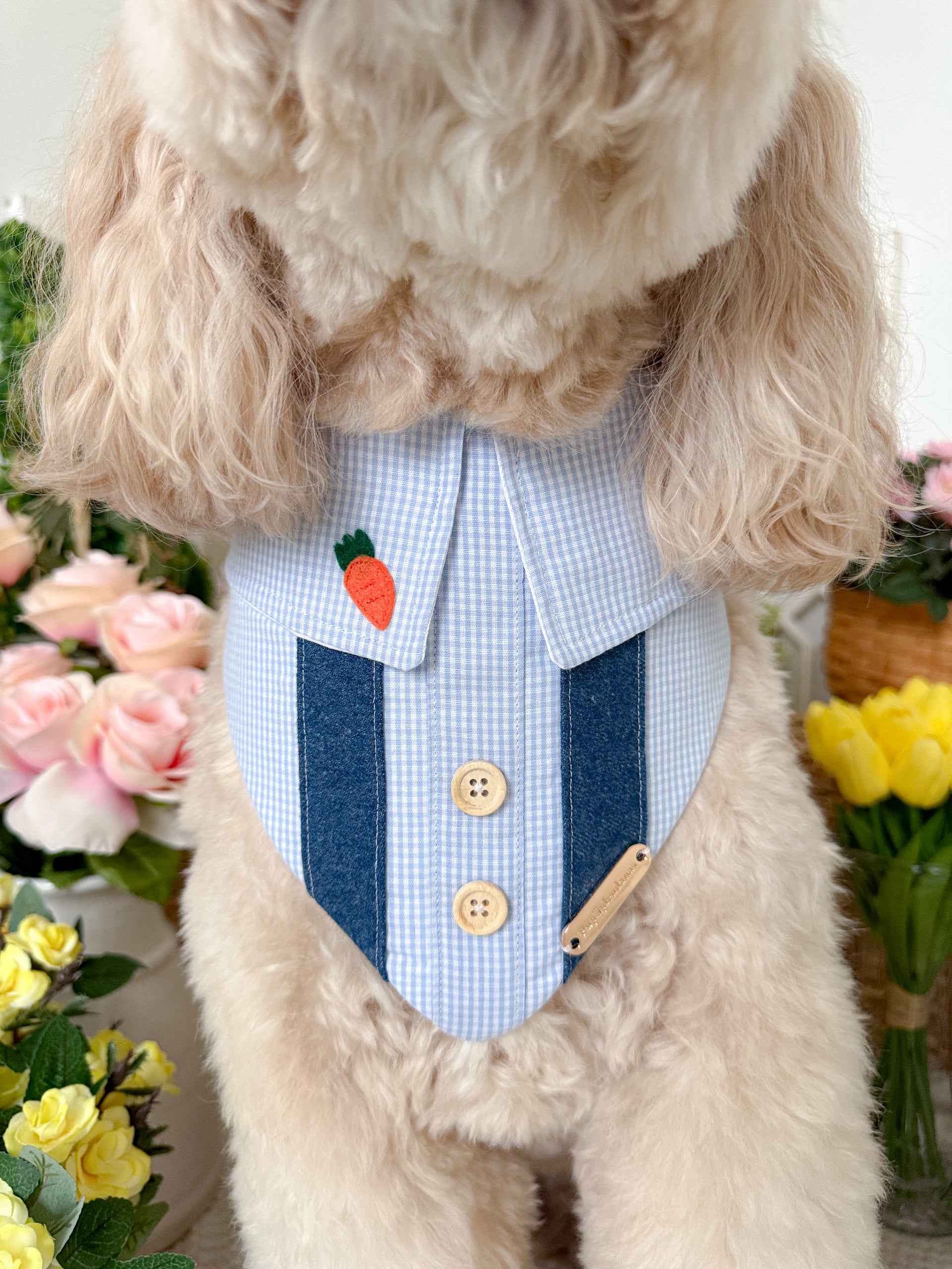 Product Disclaimer: The bandanas, collars, bow ties, and all other products are not meant to be chewed or played with. Please supervise your dog when wearing our products as it may cause choking or suffocation if left unattended. We are not responsible for damaged accessories caused by your pet or owner's misuse of our products.