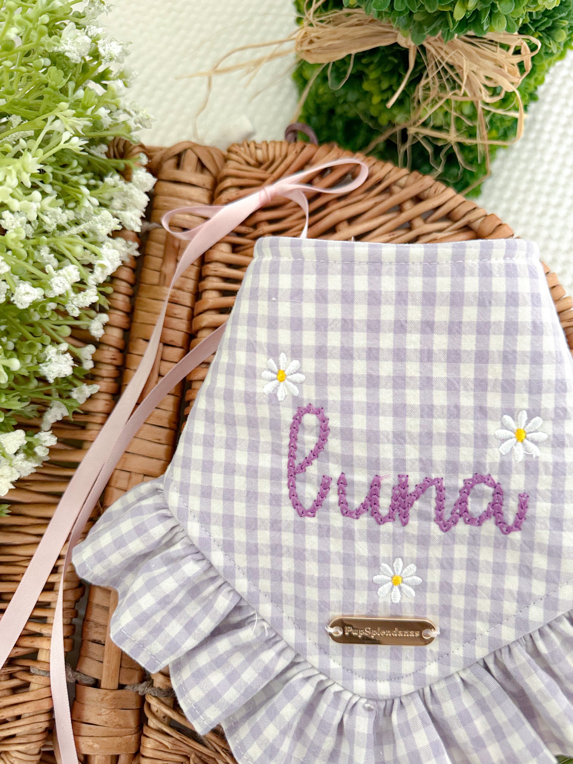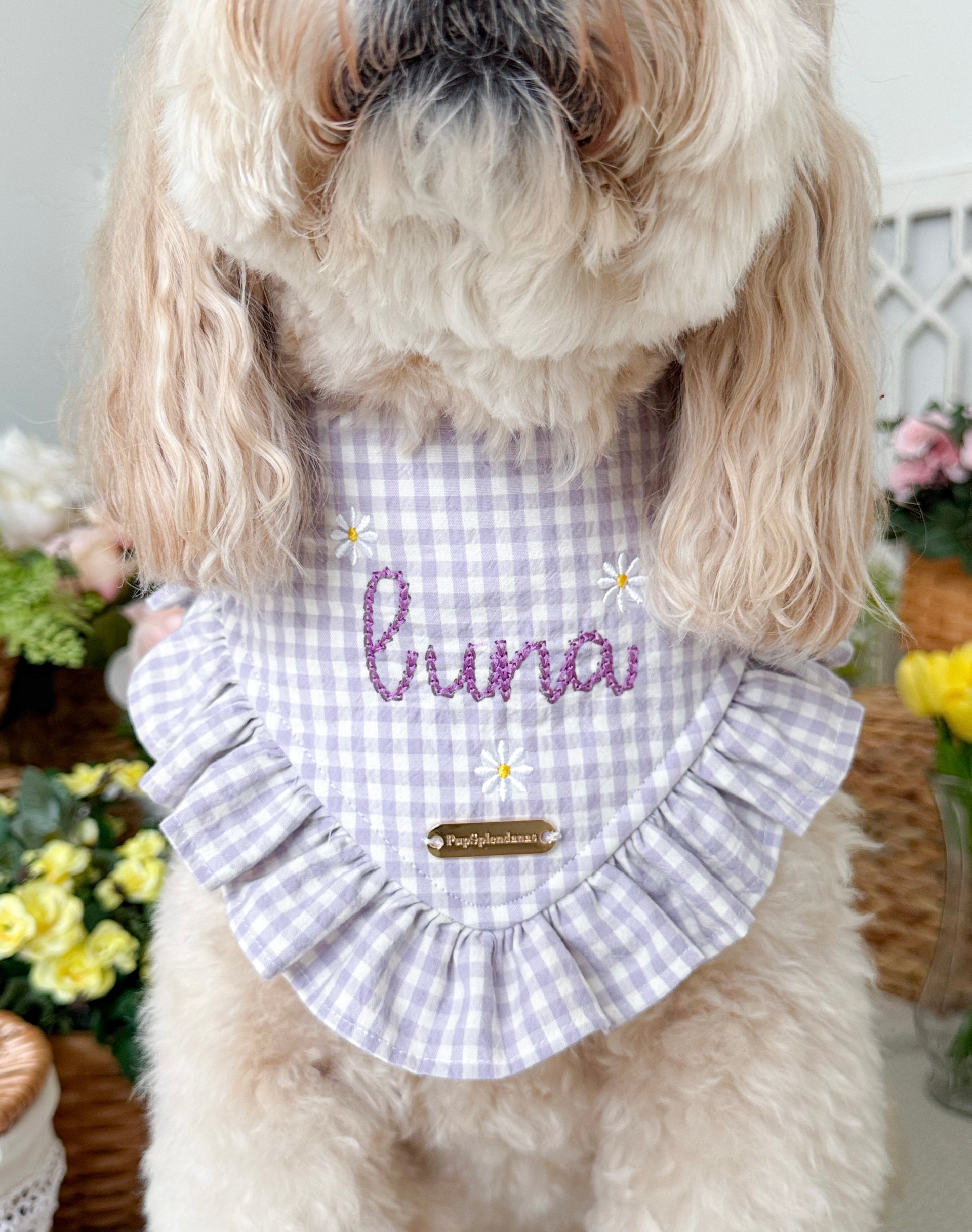 Product Disclaimer: The bandanas, collars, bow ties, and all other products are not meant to be chewed or played with. Please supervise your dog when wearing our products as it may cause choking or suffocation if left unattended. We are not responsible for damaged accessories caused by your pet or owner's misuse of our products.